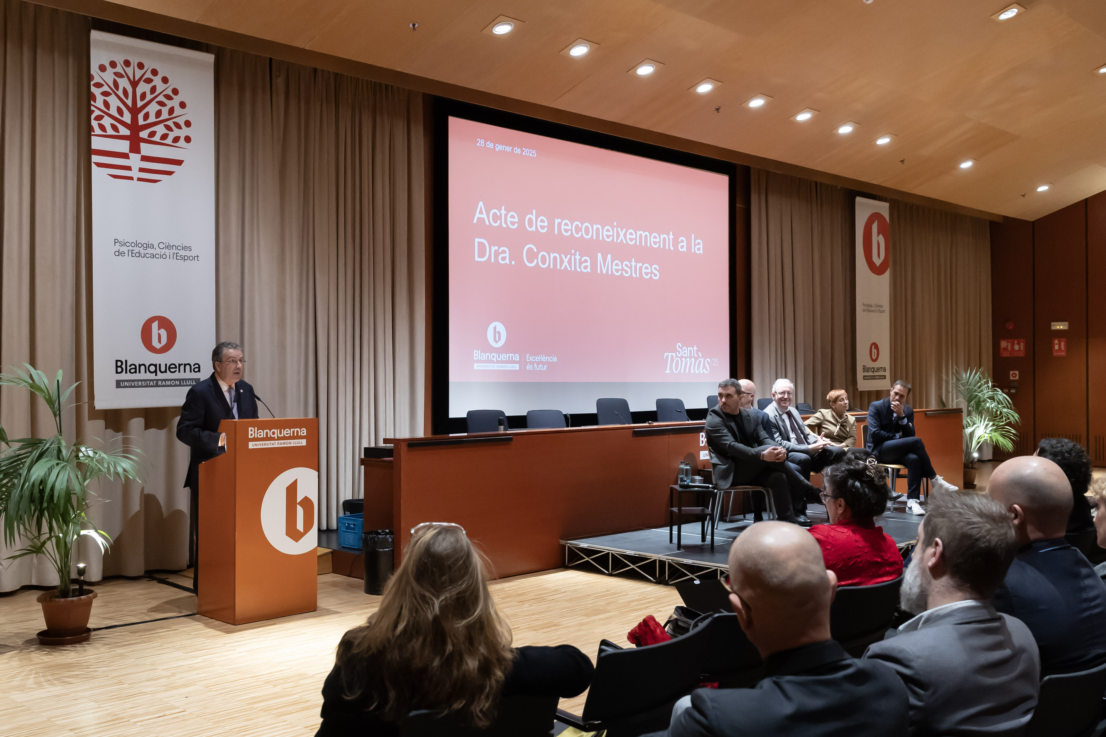 El Dr. Andreu Ibarz va fer el discurs d’agraïment esmentant cinc raons de reconeixement i agraïment que, com va puntualitzar, han estat “elaborats des del cor i el cap”. Entre altres mèrits, va destacar que la Dra. Mestres ha format part de tota la història de la Facultat, amb un total de 33 cursos acadèmics i va descriure-la com a una dona forta, de confiança, de tracte fàcil, propera, discreta i sempre disponible. El Dr. Ibarz va concloure el discurs afirmant que “Blanquerna ha tingut un gran privilegi en comptar amb la teva persona”.