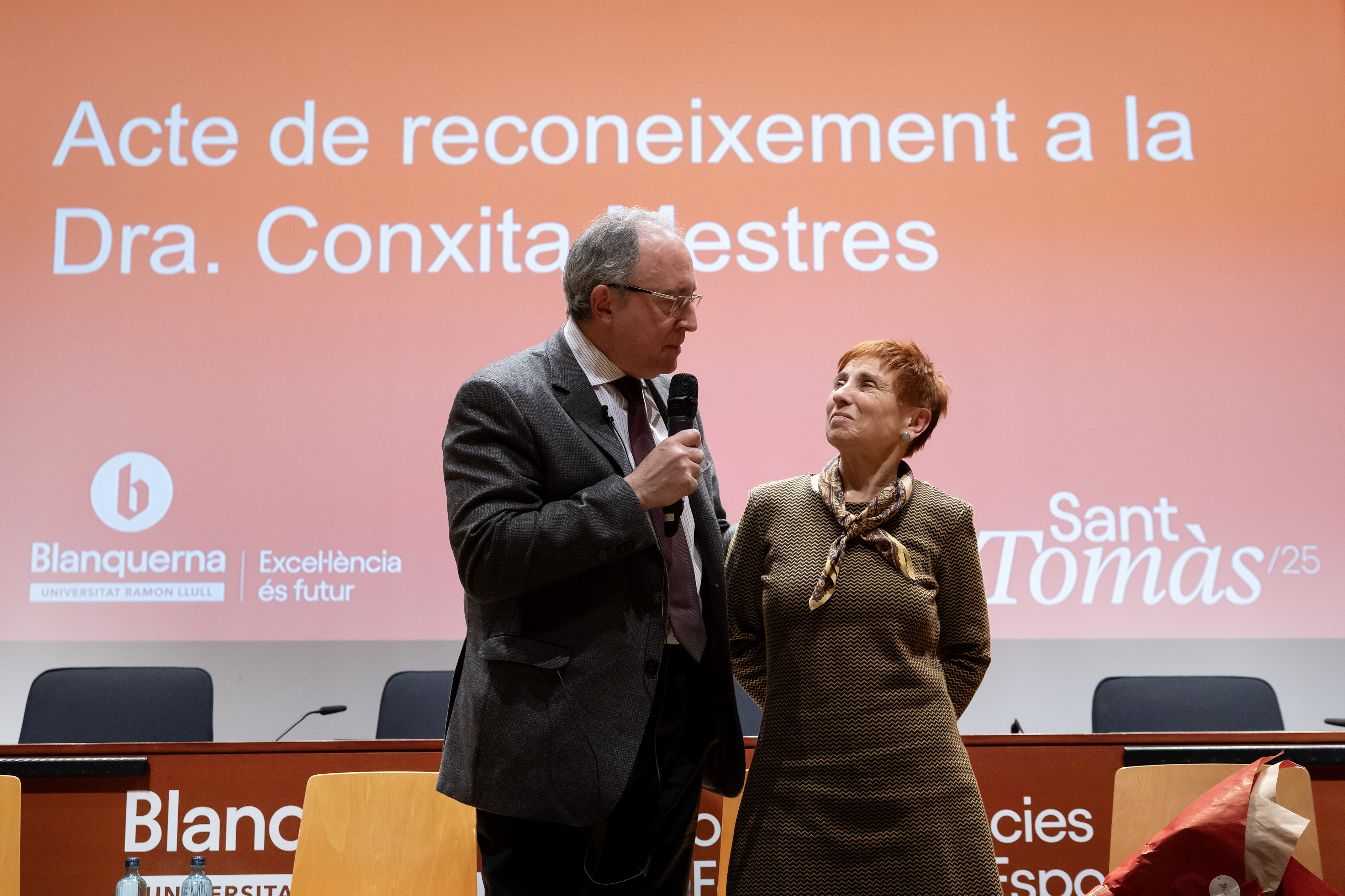 En el marc de la jornada de Sant Tomàs, vam celebrar l’acte de reconeixement de l’actual degana de la Facultat de Ciències de la Salut, la Dra. Conxita Mestres, que aquest curs deixa el càrrec i passa el relleu a la nova degana, la Dra. Montserrat Esquerda.