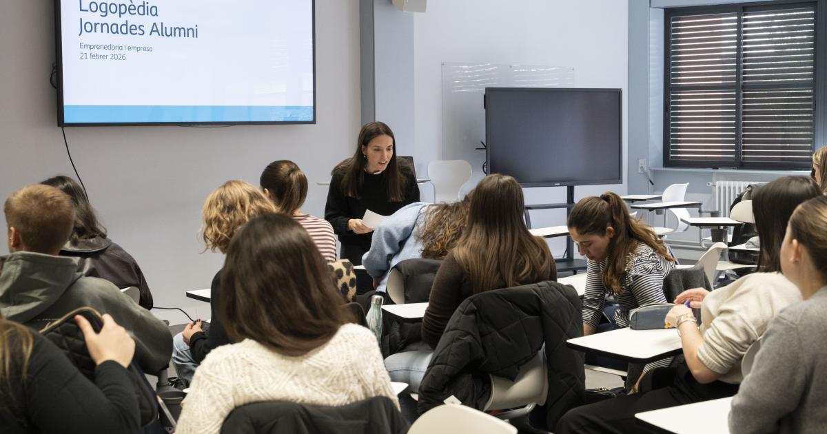 Durant el taller, va iniciar una primera part centrada en contextualitzar la realitat laboral actual i en exposar un recorregut professional poc habitual: el pas de la pràctica clínica a una empresa multinacional del sector dels dispositius mèdics. Aquest enfocament va permetre ampliar la perspectiva de les estudiants de quart curs sobre les diverses sortides professionals dins l’àmbit de la logopèdia.