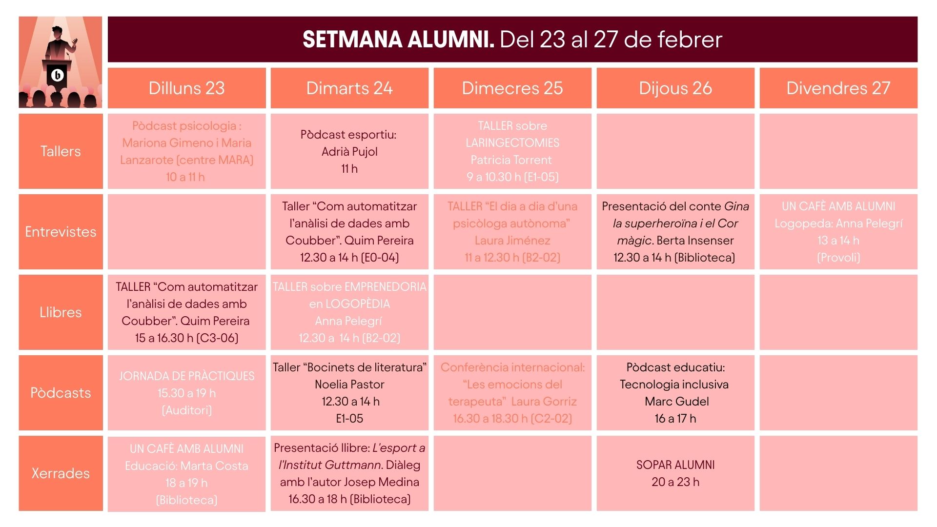 Del 23 al 27 de febrer celebrem la 3a Setmana Alumni, dies en què vosaltres torneu a ser els autèntics protagonistes.