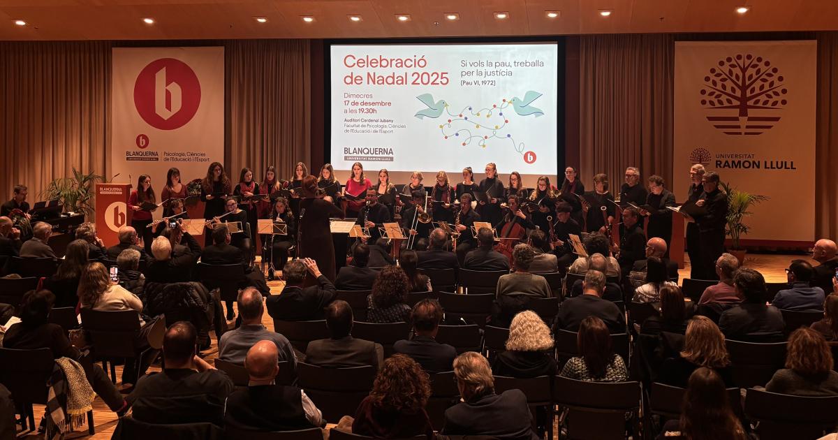 L’acte, organitzat un any més conjuntament amb la Càtedra Blanquerna–URL, va tenir lloc a l’Auditori de la Facultat de Psicologia i Ciències de l’Educació i de l’Esport, i va combinar paraula, música i convivència en el marc de les festes de Nadal.