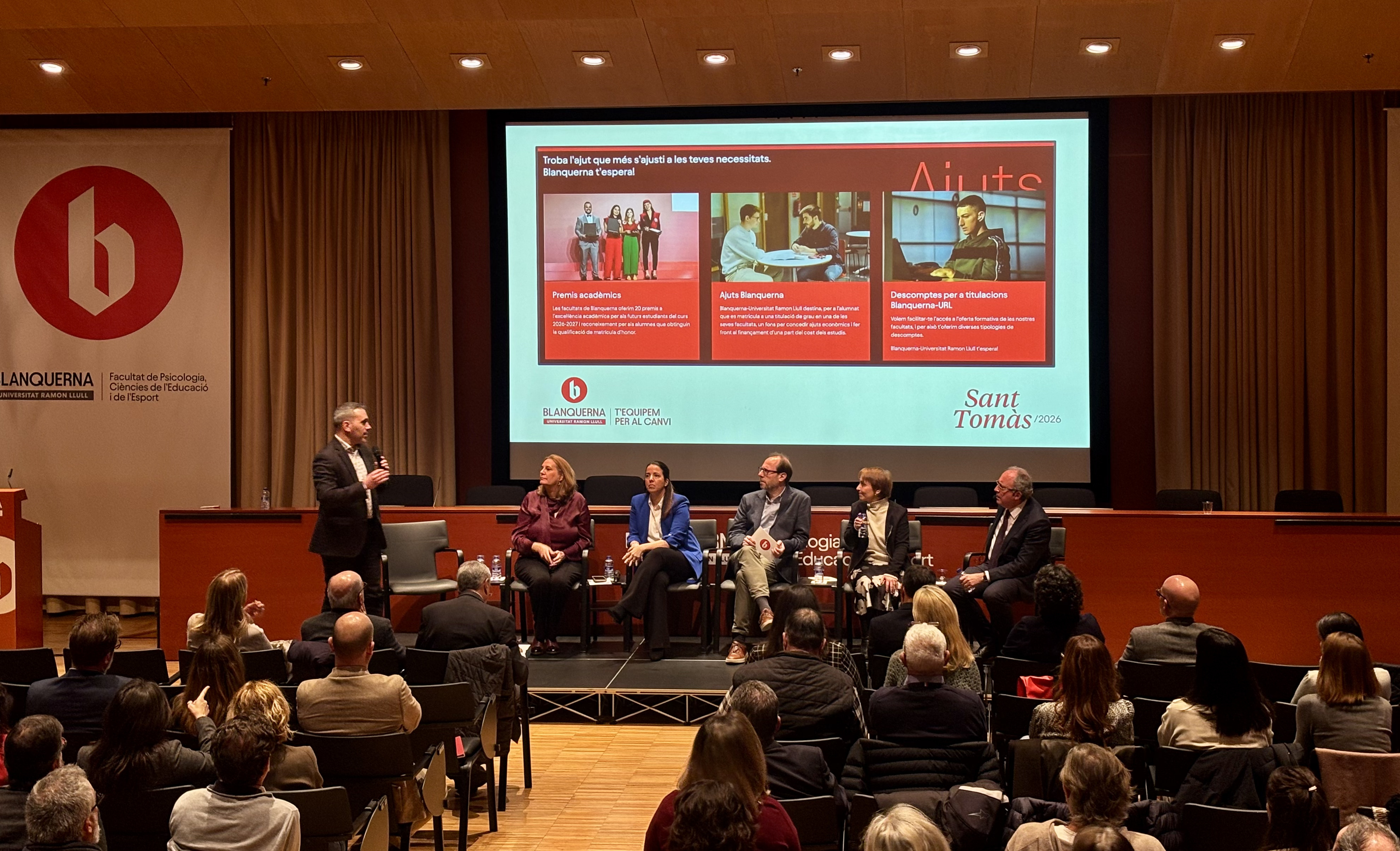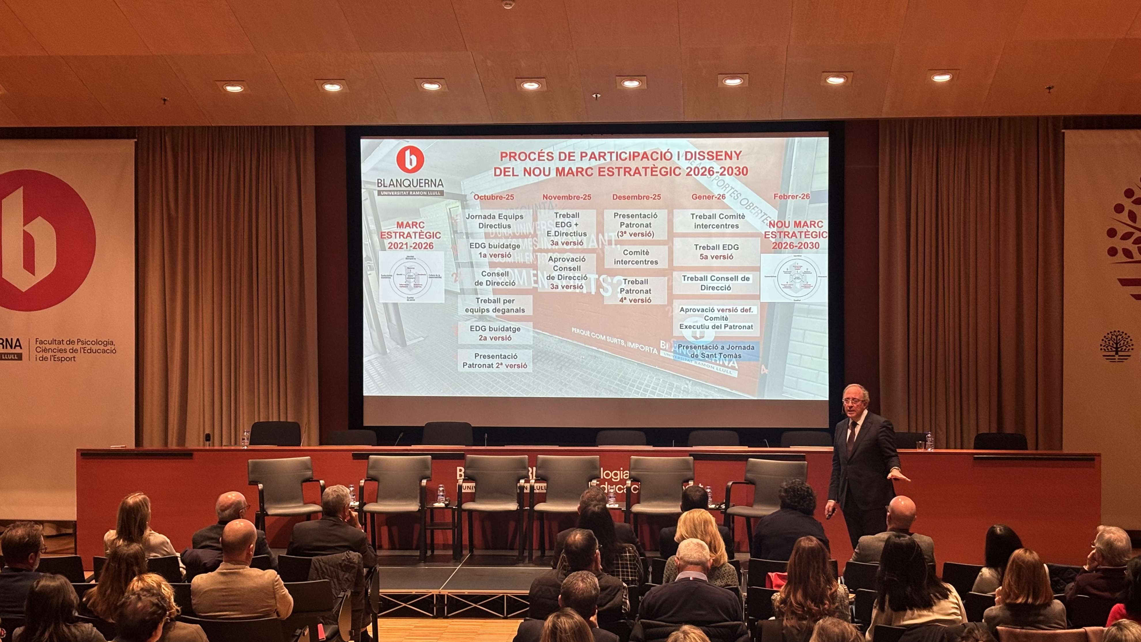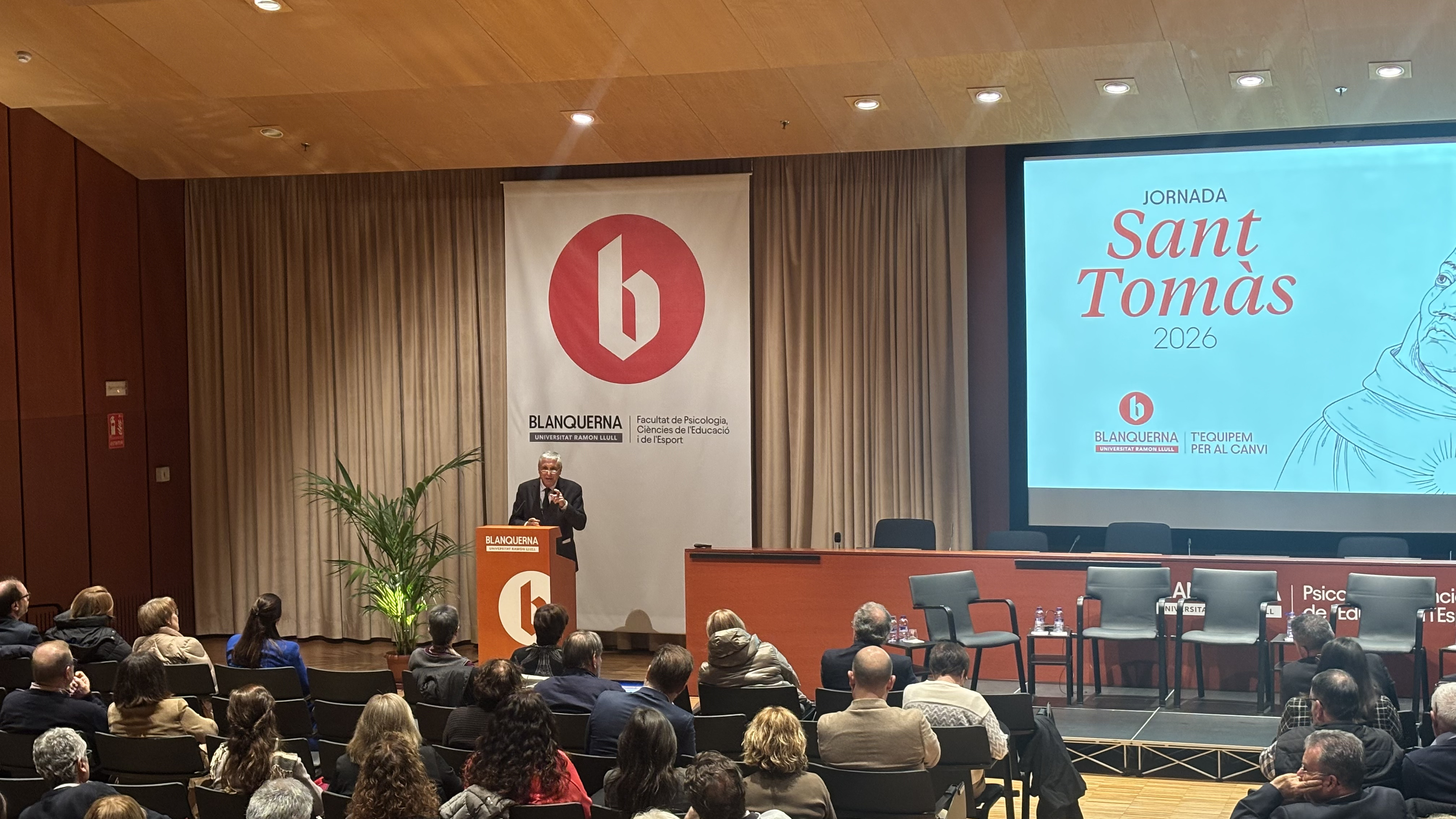 Blanquerna-URL ha celebrat avui, dimecres 28 de gener, la Jornada de Sant Tomàs a l’auditori de la Facultat de Psicologia, Ciències de l’Educació i de l’Esport, una trobada institucional que ha reunit la comunitat universitària per compartir una reflexió col·lectiva sobre el sentit del projecte educatiu de Blanquerna, inspirat en el pensament de Sant Tomàs d’Aquino.