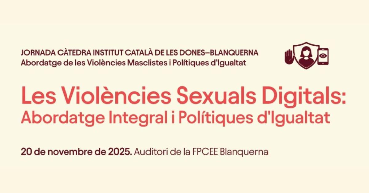 El 20 de novembre de 2025, de 15.30 h a 20.45 h, l’Auditori de la FPCEE acollirà la jornada “Les violències sexuals digitals: abordatge integral i polítiques d’igualtat”, organitzada per la Càtedra ICD-Blanquerna per a l’Abordatge de les Violències Masclistes i Polítiques d’Igualtat.