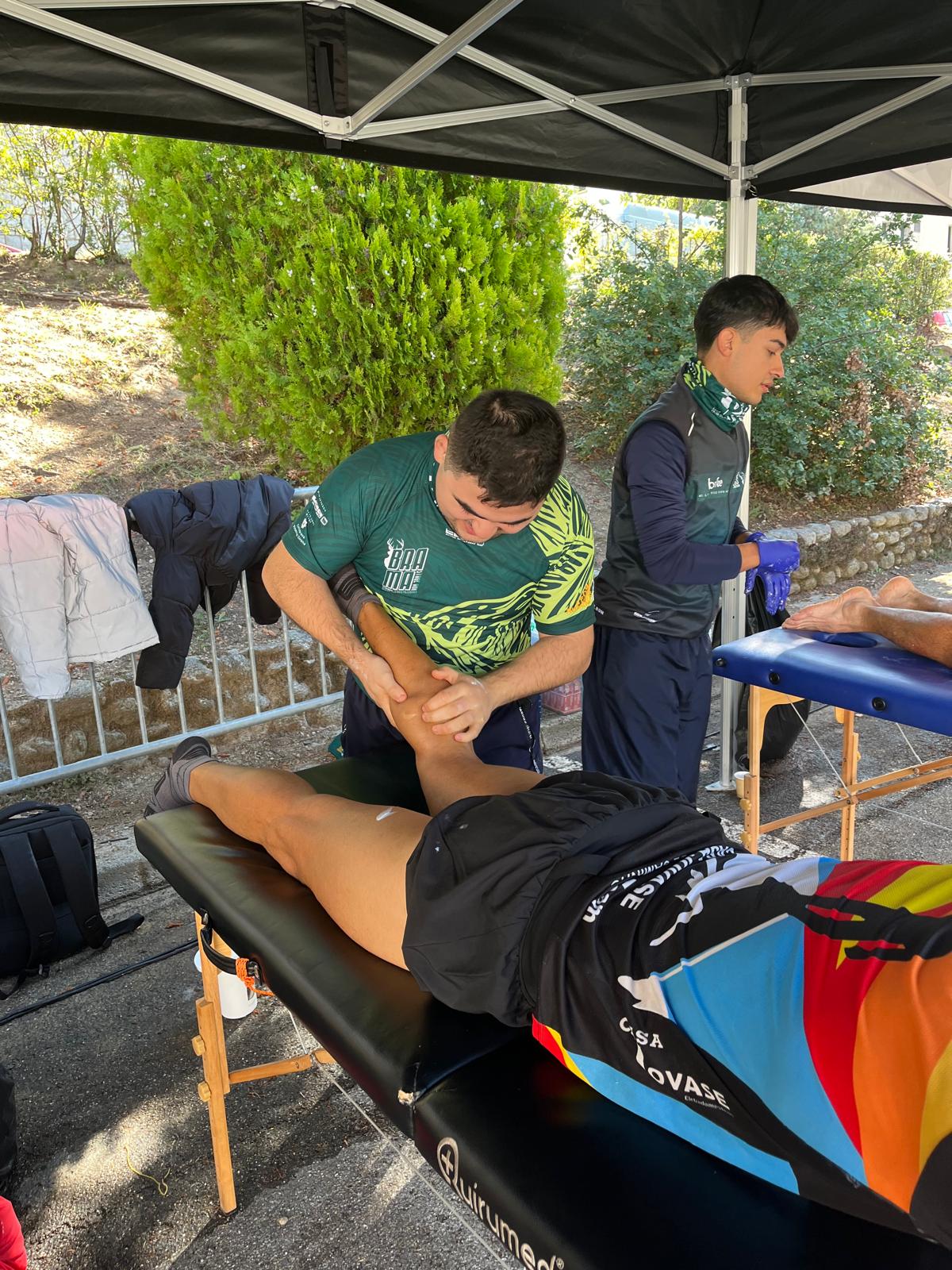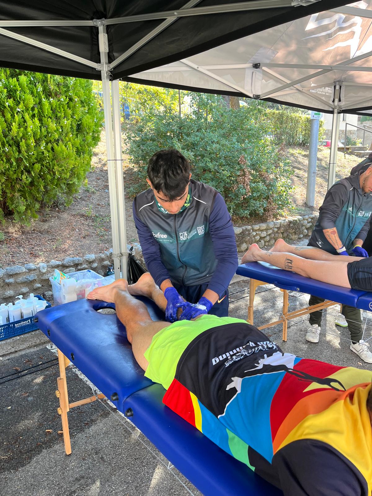 Durant tot el cap de setmana, el nostre alumnat va garantir un servei continuat i de qualitat als atletes, contribuint al bon desenvolupament de la prova i posant en pràctica els seus coneixements en fisioteràpia esportiva en un entorn real.