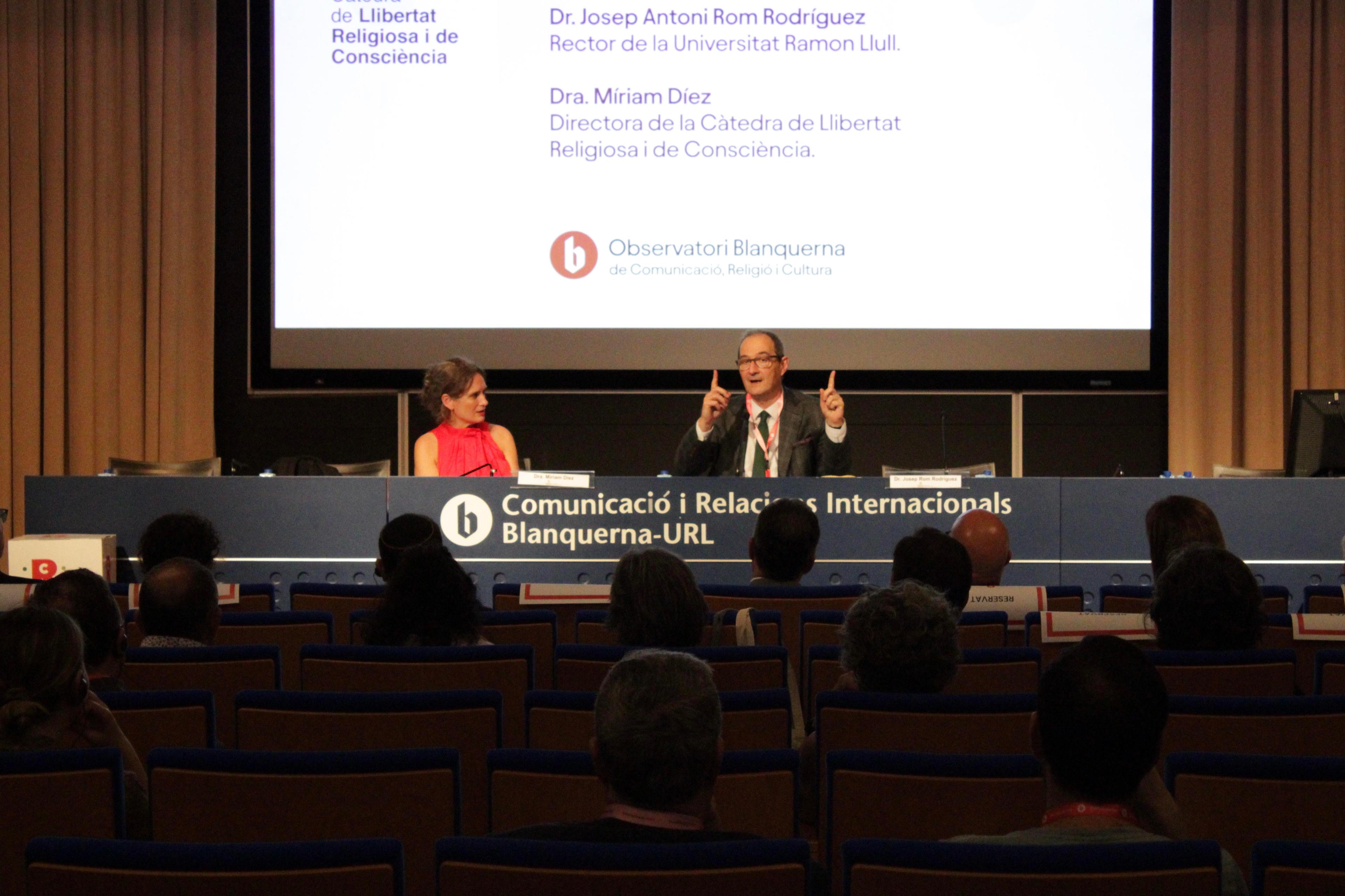Barcelona, 6 de juny del 2024. Els dies 5 i 6 de juny ha tingut lloc el II Congrés Internacional sobre Llibertat Religiosa i de Consciència a la Facultat de Comunicació i Relacions Internacionals Blanquerna-URL. El Congrés, va ser inaugurat en un acte de benvinguda presidit pel Dr. Josep Antoni Rom, rector de la Universitat Ramon Llull, i la Dra. Míriam Díez, vicedegana de Recerca i Relacions Internacionals de la Facultat de Comunicació i Relacions Internacionals Blanquerna-URL i directora de l'Observatori Blanquerna de Comunicació, Religió i Cultura. "Aquest congrés és important per a la gent religiosa, però també per a la gent sense religió. El pluralisme va amb la llibertat", va assegurar Díez. “Un congrés és un espai de diagnòstics i de respostes. Aquests dies són per escoltar i col·laborar. És el llegat de Ramon Llull", va ressaltar el rector de la URL, el Dr. Rom.