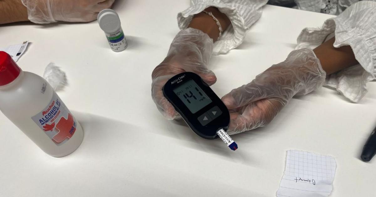 Durant la classe de Fisiologia de l’Activitat Física i de l’Esport, l’alumnat ha aprofitat l’activitat per veure quin tipus d’exercici és més beneficiós per reduir la glucosa. Fent diversos exercicis i utilitzant una mostra de sang, una màquina ha permès mesurar el nivell de glucosa de cada participant en temps real.