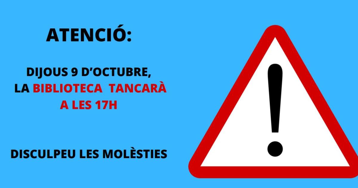 Dijous 9 d'octubre la Biblioteca d'FCS tanca a les 17h