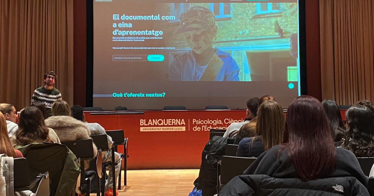 L’empresa Next Us, la plataforma per a docents que volen educar en el pensament crític, va visitar els estudiants de 1r d’Educació per portar a terme l’activitat Documentació audiovisual i educació. Durant la sessió, els alumnes van participar en diverses activitats interactives basades en documentals de tot tipus, treballant temes a través del visionat i l’anàlisi audiovisual.