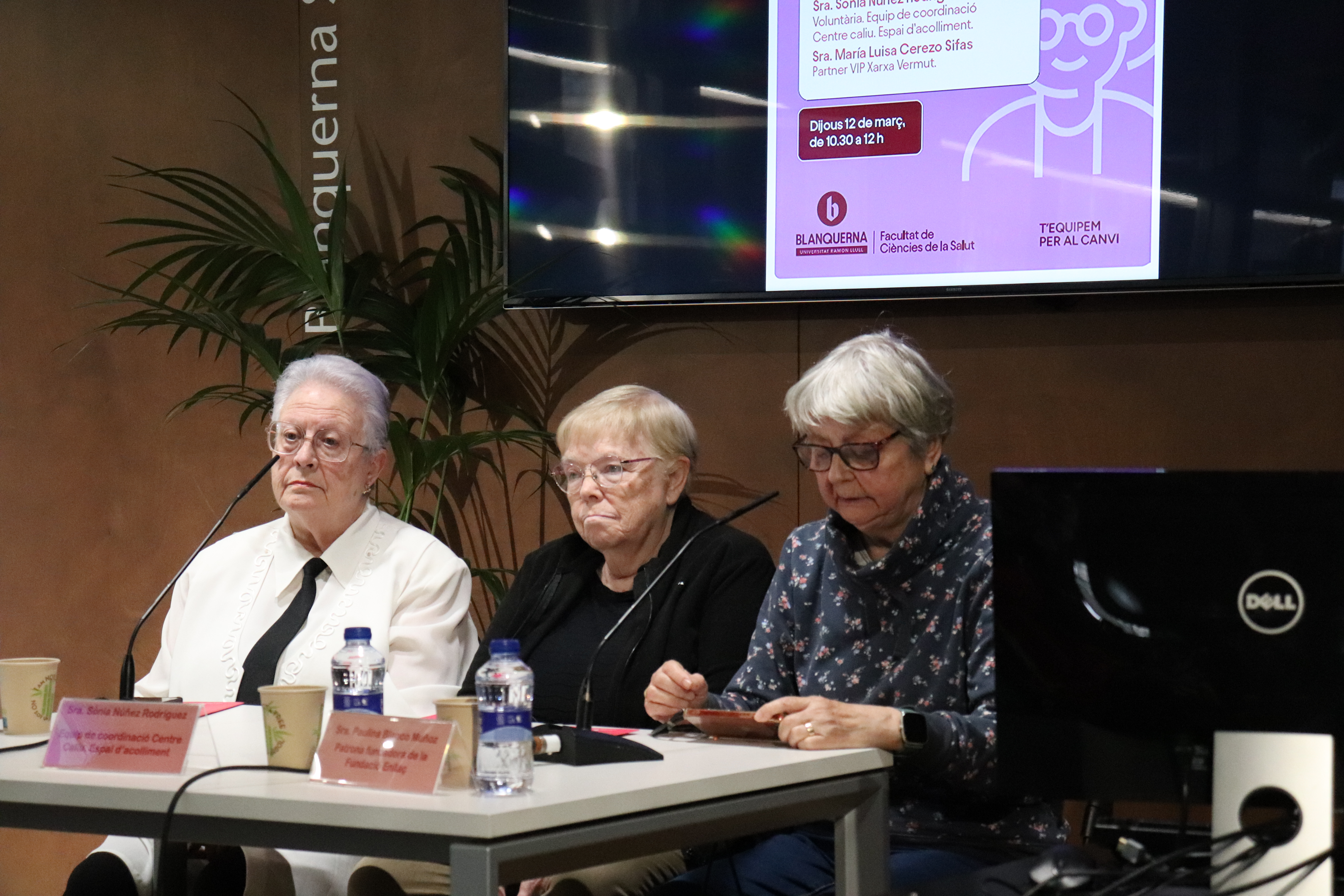 La sessió va comptar amb la participació de Paulina Blanco Muñoz, patrona fundadora de la Fundació ENLLAÇ; Sònia Núñez Rodríguez, voluntària de l’equip de coordinació del Centre Caliu (espai d’acolliment), i María Luisa Cerezo Sifas, partner VIP de la Xarxa Vermut.