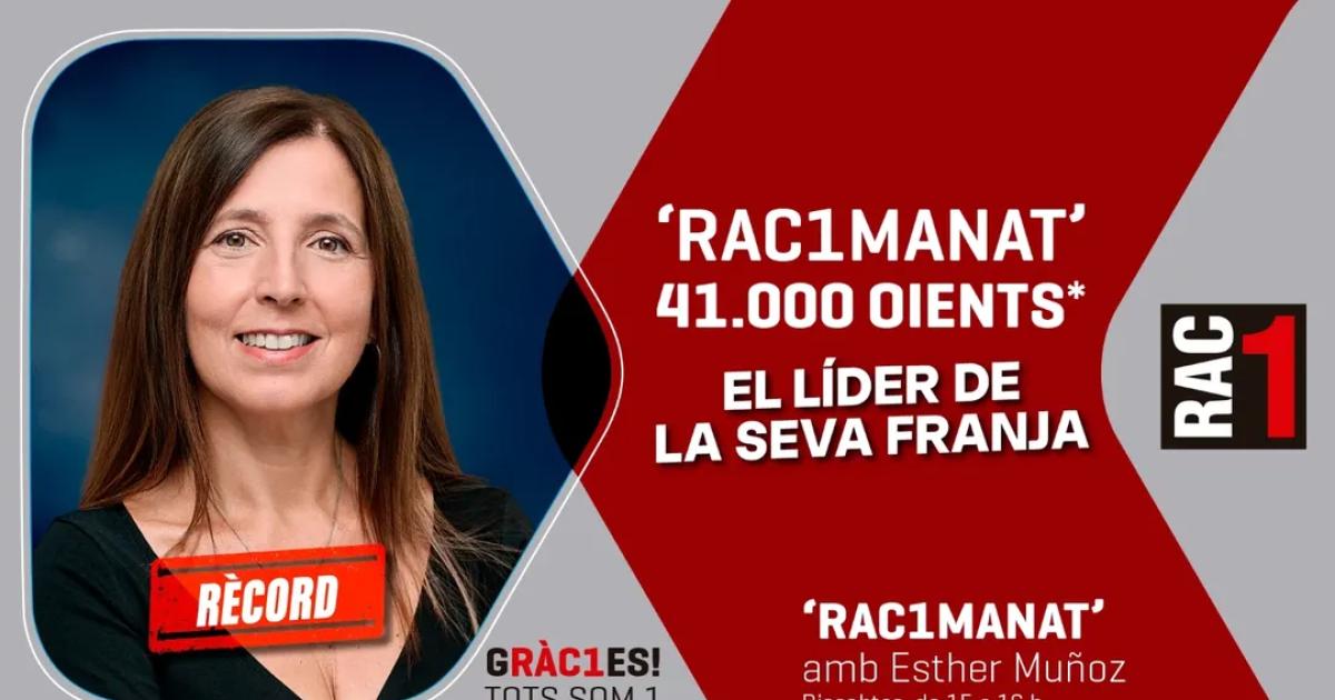 El programa de RAC1 conduït per Esther Muñoz ha assolit un nou rècord d’audiència amb 41.000 oients, situant-se com a líder de la seva franja horària segons les darreres dades de l’EGM.