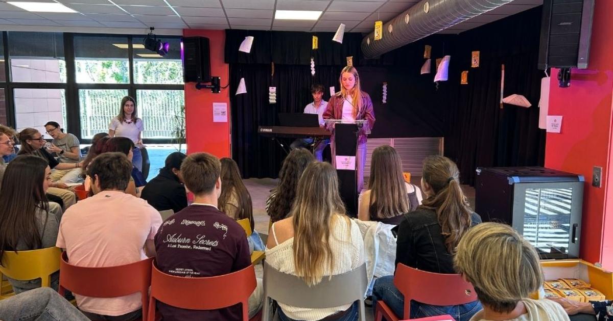 Al migdia, l’acte literari i el lliurament dels Premis Sant Jordi 2026 van omplir l’auditori amb la participació de l’alumnat i l’Orquestra Simfònica Blanquerna, amb una cantata basada en textos de Miquel Desclot i música d’Antoni Miralpeix, així com un homenatge final a Pau Casals.