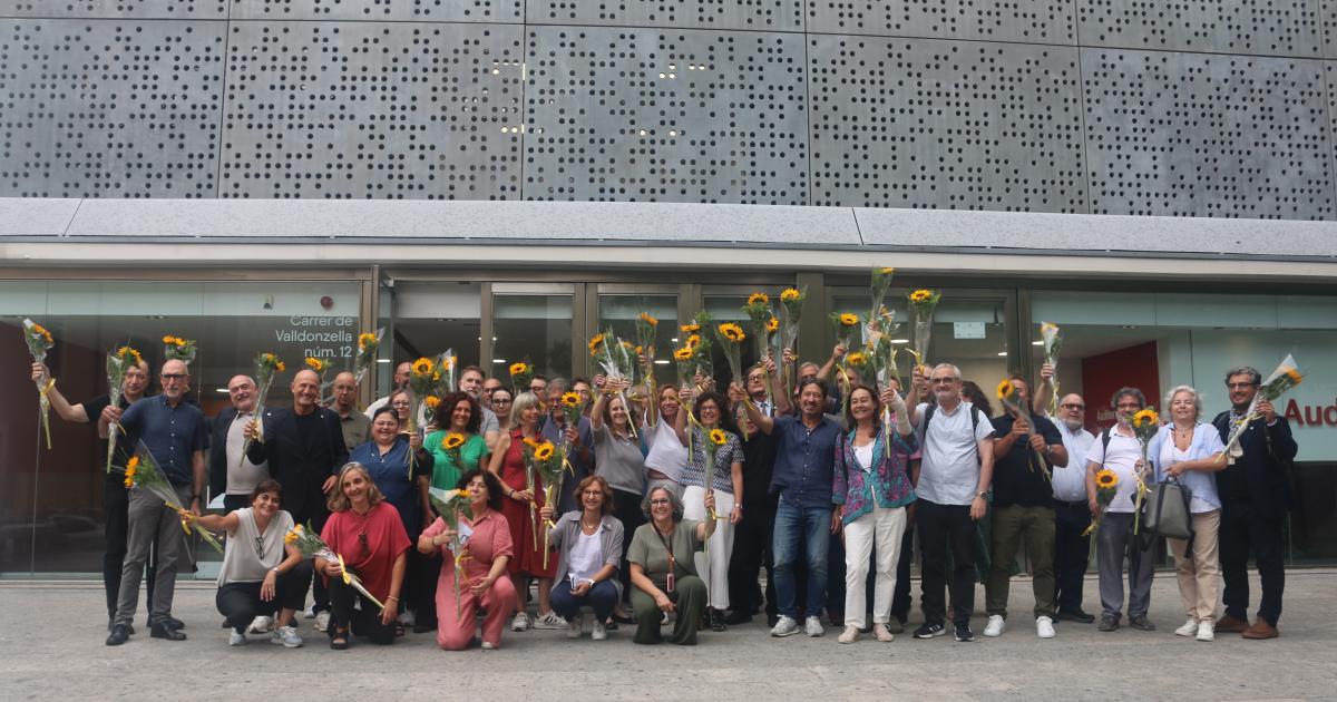 Aquest dilluns 8 de setembre, durant el Claustre d’inici de curs que ha reunit el PDI i el PAS de la Facultat, s’ha retut un homenatge als treballadors amb més de 25 anys de trajectòria. Per grups, segons l’any d’incorporació, han pujat a l’escenari, on el degà, Dr. Marc Polo, els ha lliurat el pin de plata de Blanquerna i un gira-sol com a símbol de reconeixement.