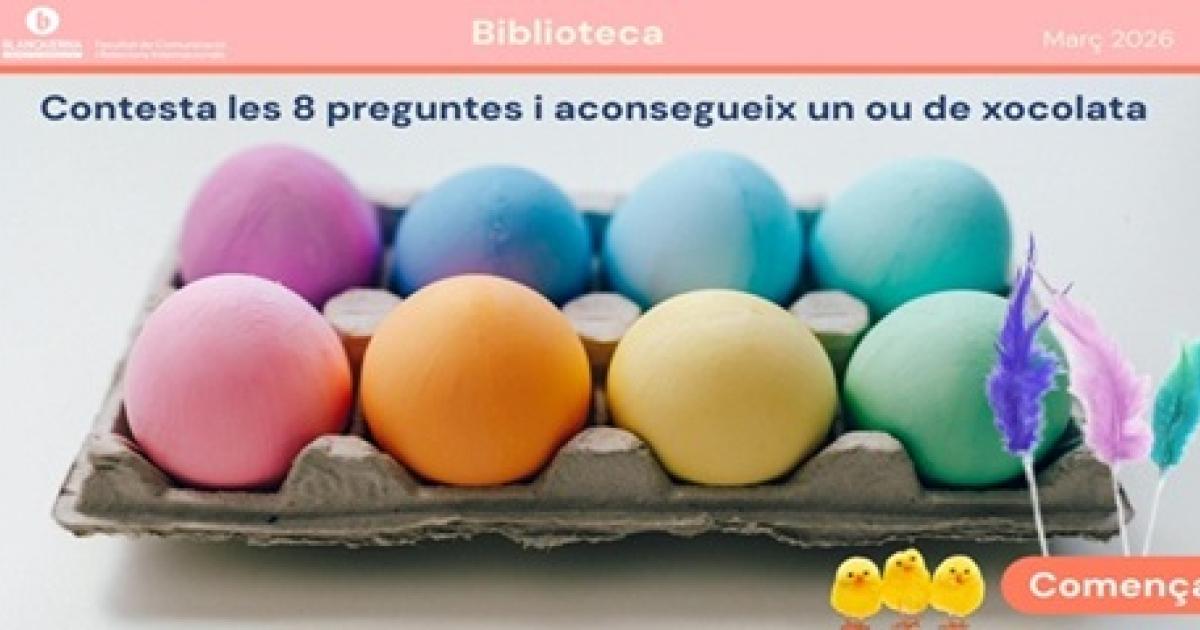 Ja hem entregat els 20 ous de xocolata que oferíem però tot i així t'animem a jugar-hi. Només són 8 preguntes ràpides que et serviran per actualitzar els teus coneixements sobre la biblioteca FCRI.