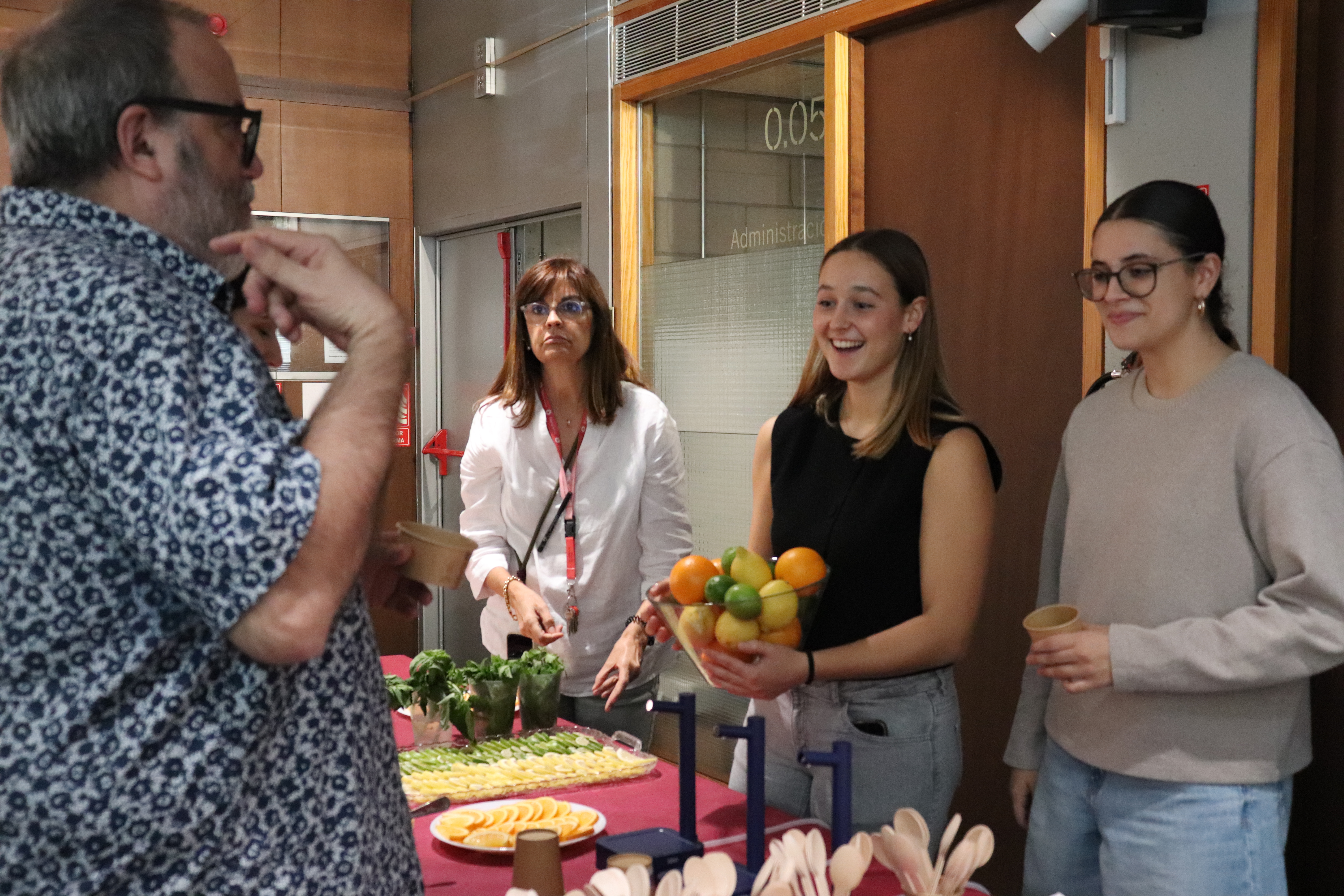 Després, els participants han pogut gaudir de l’Espai NEXUS, un conjunt d’activitats vivencials i col·laboratives que incloïen una fira d’entitats compromeses amb una alimentació saludable i justa, jocs de taula educatius, un tast d’aliments (olis, mels i xocolates) i un cinefòrum amb el curtmetratge Res a perdre, sobre el malbaratament alimentari. El dinar col·lectiu, saludable i sostenible, preparat per la professora Anna Gelonch i estudiants del grau, ha estat un dels moments més celebrats de la jornada.