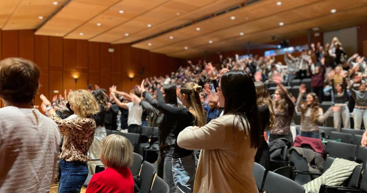 En acabar el treball a les aules, els estudiants han tornat a l’auditori, on els professionals d’Aspace han fet un retorn de com es va gestionar el CAS, seguit d’un espai de preguntes i debat amb els assistents.