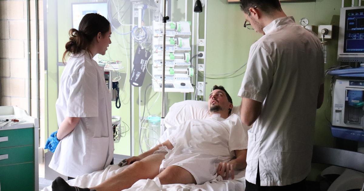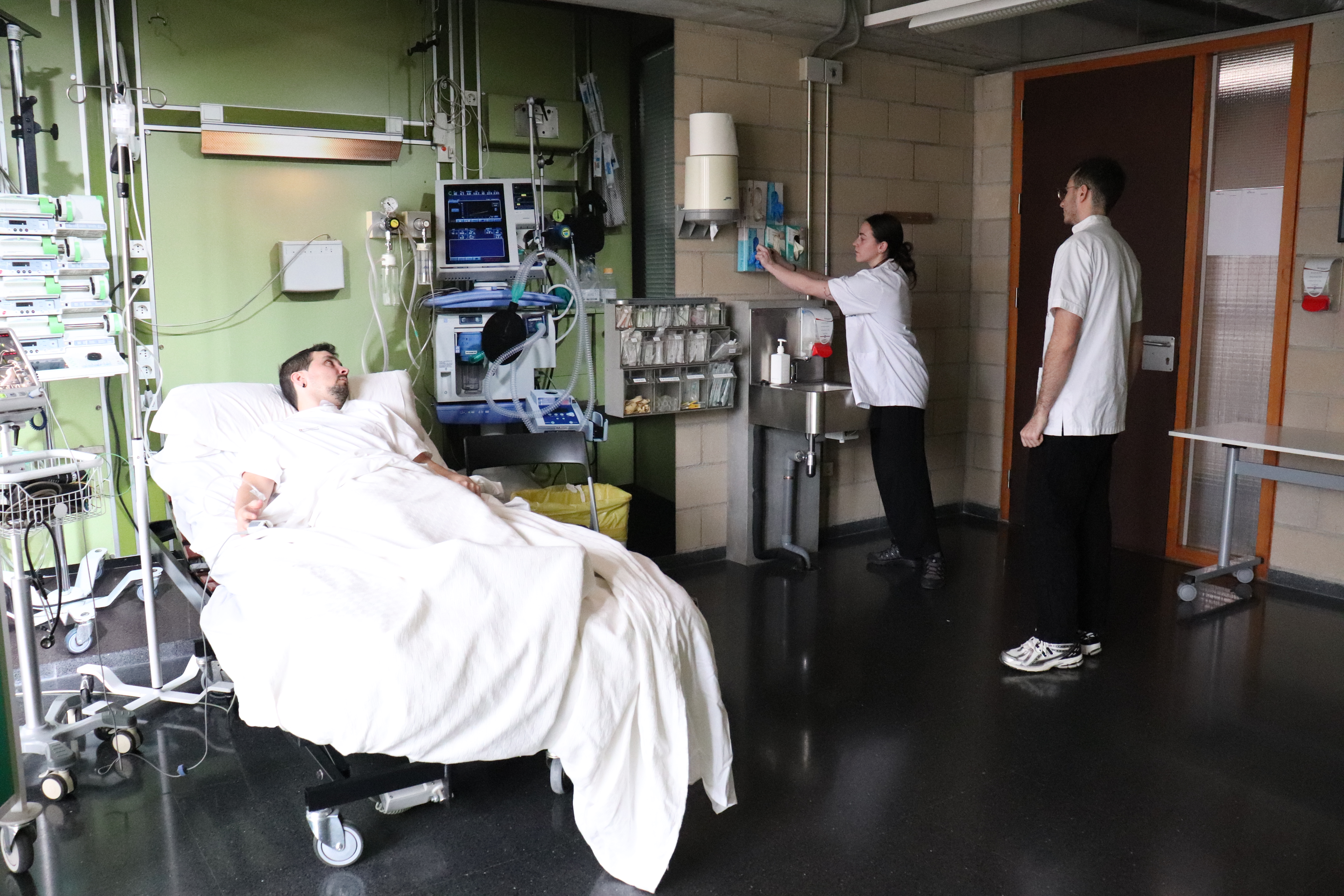 La sessió es va desenvolupar a la Sala d’hospital de la Facultat, un espai que permet recrear situacions pròpies de l’entorn sanitari i facilitar un aprenentatge més immersiu. Tot i que les simulacions formen part habitual de la metodologia docent del grau, en aquesta ocasió l’activitat es va centrar especialment en situacions pròpies de l’àmbit clínic.