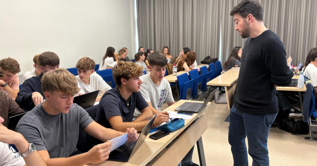 Adrià Rocha, alumni del grau en Periodisme i Comunicació Corporativa, ha tornat a la Facultat per parlar amb els de segon a la classe de la professora Andrea Daza.