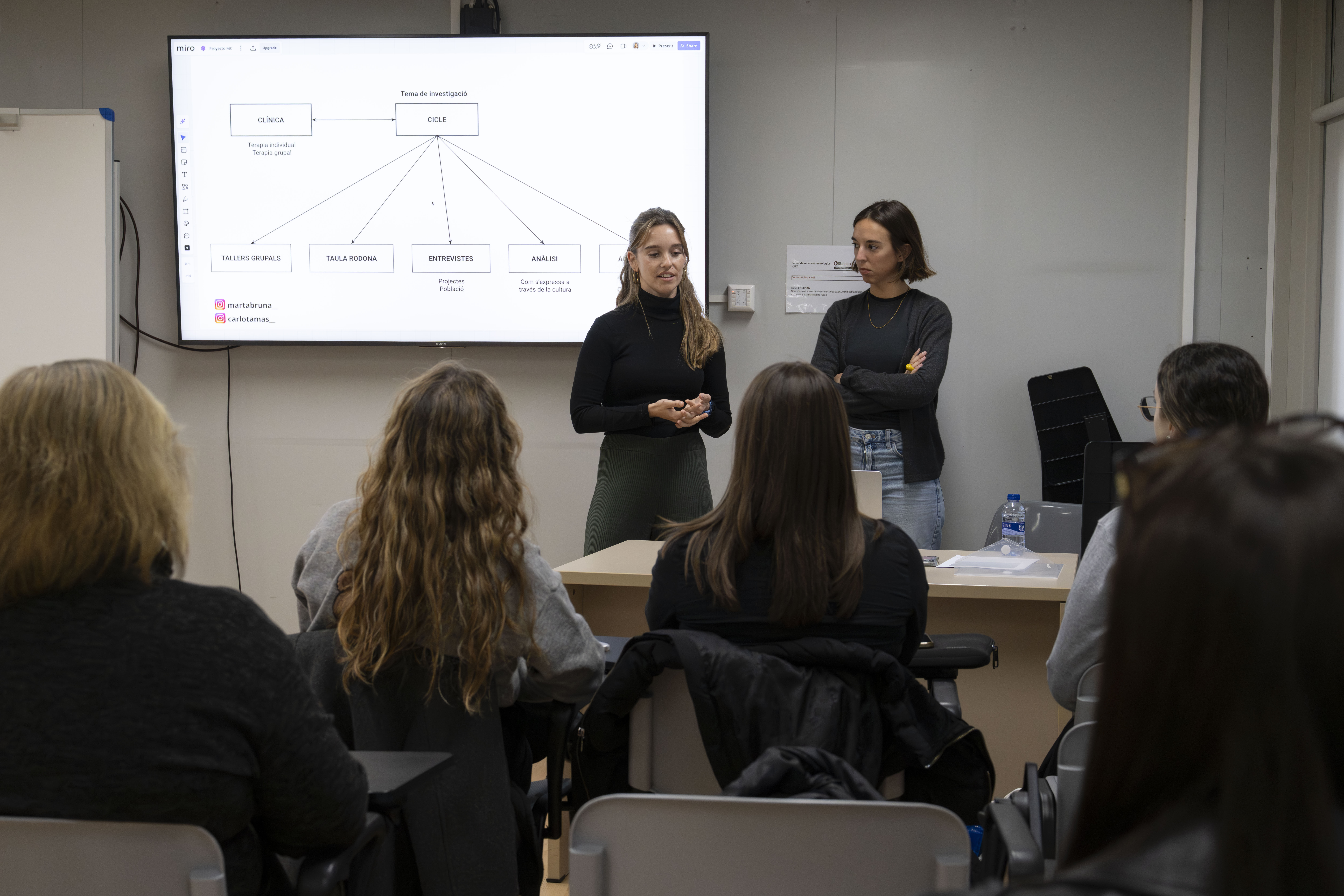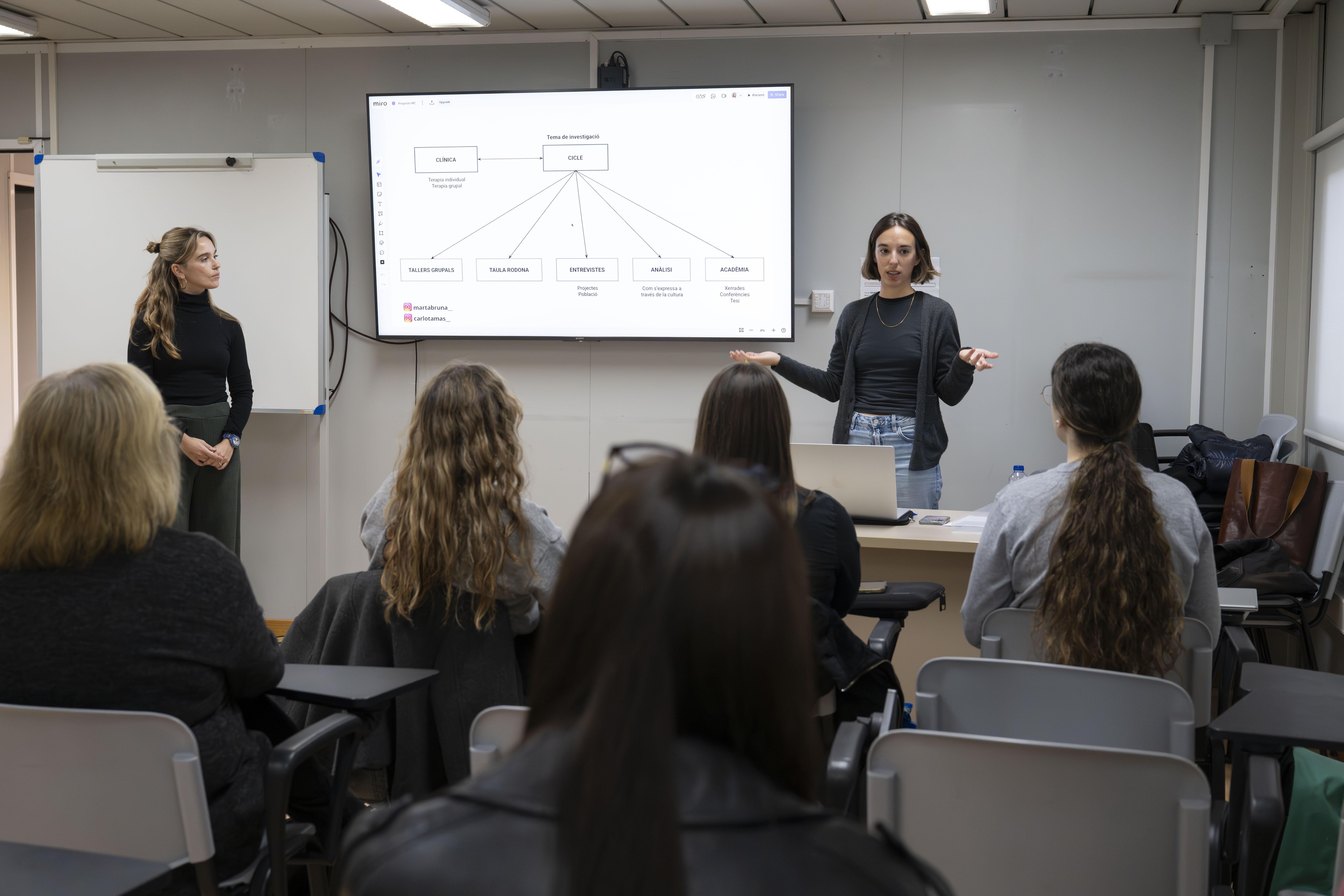 Marta Bruna (alumni Psicologia 2020) i Carlota Mas (alumni Psicologia 2016 i màster universitari en Psicologia del Treball, Organitzacions i Recursos Humans 2018) van conduir la classe, en el marc de l’assignatura de Psicologia Intervenció Psicològica en Salut Cerebral i Benestar Emocional.