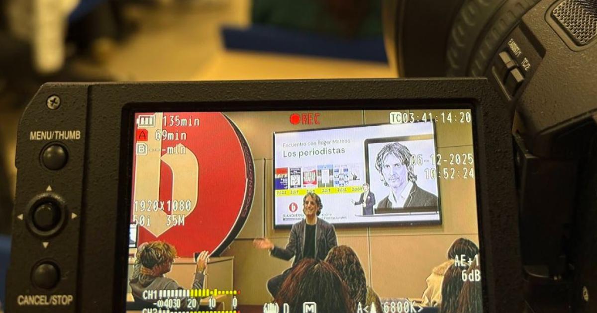 El passat divendres 5 de desembre, els alumnes de Periodisme i Comunicació Corporativa van viure una experiència professional immersiva amb la recreació d’una conferència de premsa protagonitzada pel periodista i escriptor Roger Mateos. Per a l’activitat van convertir l’aula en una sala de premsa amb càmeres i micròfons, recreant amb fidelitat l’ambient d’una roda de premsa real.
