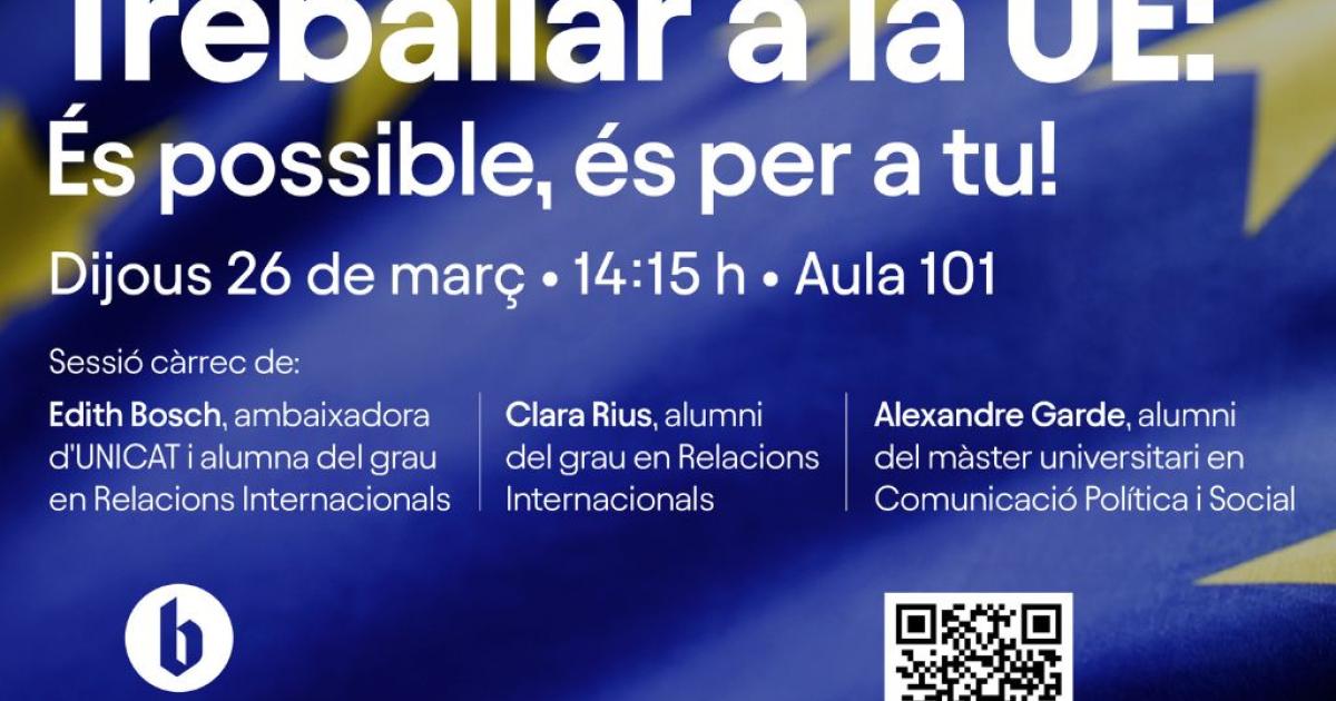 Tens interès a fer carrera a les institucions de la UE? Des de la Facultat volem apropar-te les claus per a accedir-hi. Per això, el pròxim dijous 26 de març a les 14:15h, tindrà lloc a l’aula 101 la xerrada "Treballar a la Unió Europea".