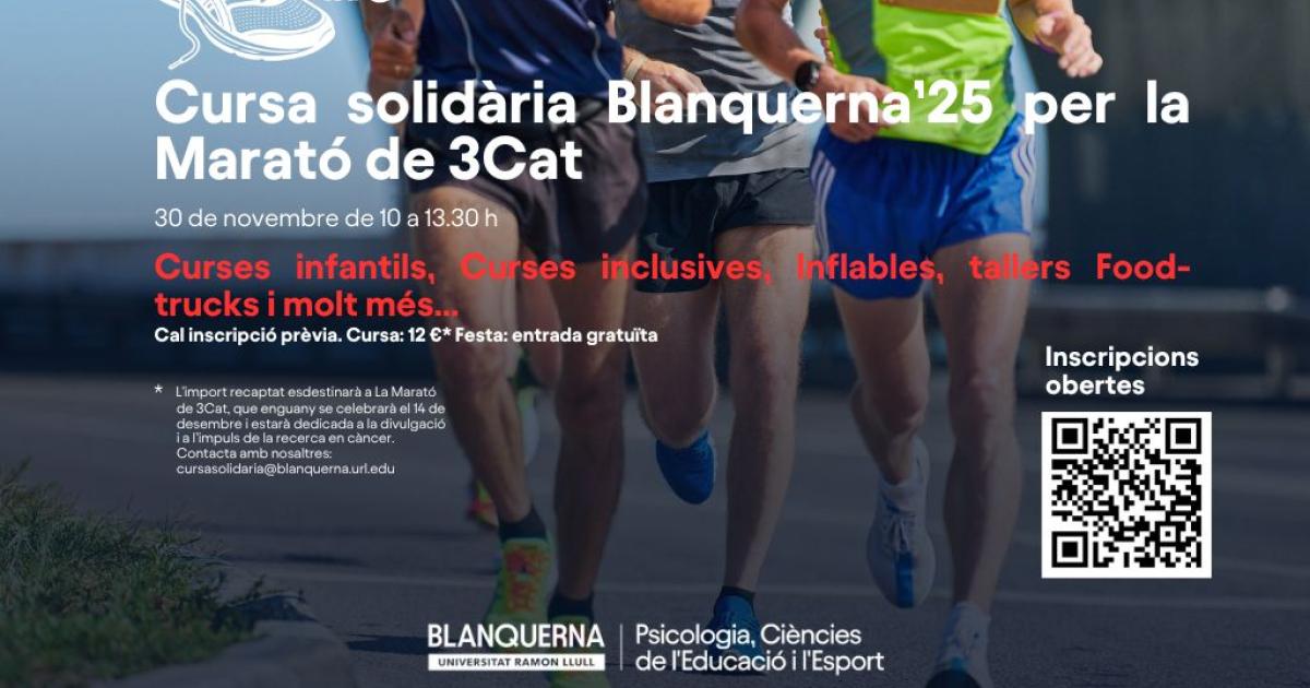 ¡Última llamada! La carrera solidaria por La Marató de 3cat, organizada por el alumnado de tercero del grado en Gestión Deportiva, ya está aquí: este domingo, 30 de noviembre, te espera una mañana de deporte y compromiso en el Complejo Deportivo L’Hospitalet Nord.