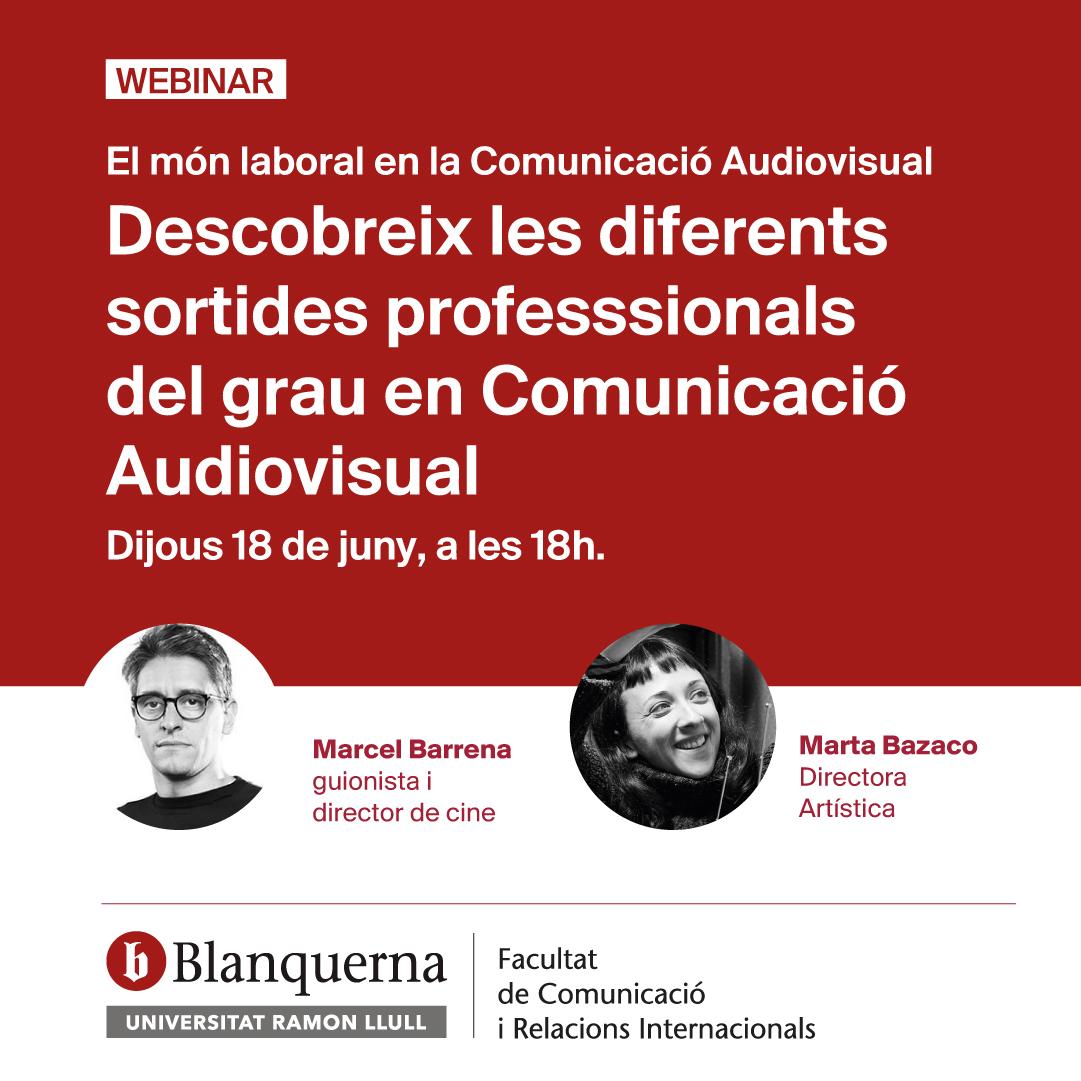 El jueves, día 18 de junio, a las 18 h, descubriremos las diferentes salidas profesionales del grado en Comunicación Audiovisual, con dos figuras del sector, que explicarán sus proyectos actuales.